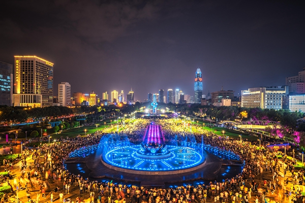 泉城廣場是濟南市的中心廣場。廣場位于市中心繁華地帶,處于“千佛山――趵突泉――大明湖”著名特色旅游區的中心,東起南門大街,西至趵突泉南路,南臨濼源大街,北依環城公園,東西長780米,南北寬230米,占地總面積約16.96萬平方米,新建建筑6.8萬平方米,地上花崗巖鋪設13萬平方米,綠化面積5.6萬平方米,工程概算總投資為13.5億元。整個泉城廣場自西往東由趵突泉廣場、南北名士林、泉標廣場、頤天園和童樂園、下沉廣場、歷史文化廣場、濱河廣場、荷花音樂噴泉、文化長廊、四季花園、科技文化中心等十余部分組成。