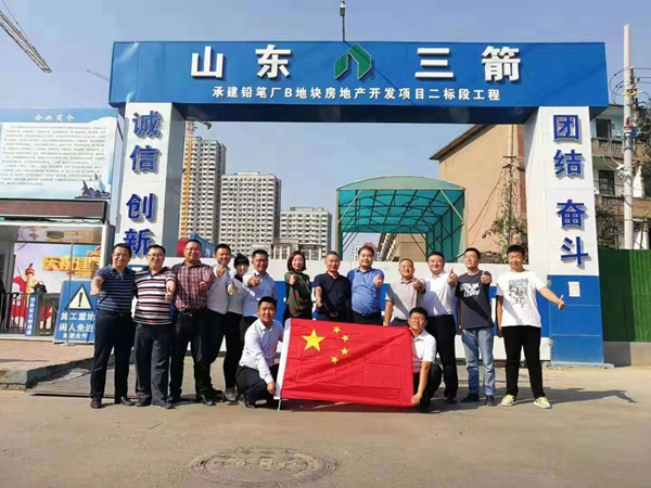 國慶期間,三箭股份公司領(lǐng)導(dǎo)班子成員及各項目公司經(jīng)理兵分兩路,先后到仁和家園、馨陽嘉苑項目、天馬相城、嵐橋大廈、糧食局食品產(chǎn)業(yè)園、齊魯工業(yè)大學(xué)實訓(xùn)基地、和平廣場、瑞福廣場等在建重點工程進(jìn)行走訪慰問,對節(jié)日期間仍堅守工作崗位的一線員工致以節(jié)日的問候和祝福。走訪前,為慶祝中華人民共和國成立70周年,股份公司領(lǐng)導(dǎo)班子成員及各項目公司經(jīng)理開展了“我與國旗合個影”活動,發(fā)自內(nèi)心地祝福偉大祖國國富民強(qiáng)、繁榮昌盛,集團(tuán)公司蓬勃發(fā)展、再創(chuàng)輝煌。走訪期間,大家在項目上集中觀看了國慶閱兵式,并紛紛表示為閱兵式的豪邁盛大而震撼,為祖國強(qiáng)大而驕傲,抒發(fā)了愛國情懷。走訪期間,公司領(lǐng)導(dǎo)重點要求抓住近期這段建筑黃金季節(jié),合理安排工序,科學(xué)組織生產(chǎn),提前考慮揚(yáng)塵、冬季施工、材料供應(yīng)不及時等不利因素,確保工程按照計劃順利完成。